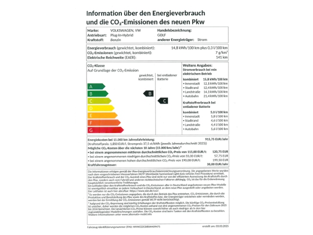 6-Gang-Automatikgetriebe oder DSG Beachtung: Fam. EDF; Doppelkupplungsgetriebe DQ400; ASR; Airbag für Fahrer und Beifahrer, mit Beifahrerairbag-Deaktivierung; Kopfairbags vorn und hinten, Seitenairbags vorn, Center-Airbag; Elektronische Differenzialsperre XDS; Innenspiegel mit Abblendautomatik; Scheibenbremsen hinten; Stabilisator hinten; Servolenkung elektromechanisch, geschwindigkeitsabhängig geregelt; Dreipunkt-Automatiksicherheitsgurte vorn mit Höheneinstellung und Gurtstraffer; Scheibenbremsen vorn; Außentemperatur-Anzeige; Start/Stopp-Anlage mit Rekuperation (Bremsenergie-Rückgewinnung); Elektronische Parkbremse inkl. Auto-Hold-Funktion; Betriebsspannung 12 V; Dämpfung hinten,Basis 1; Fußgängerschutzmaßnahmen erweitert; Warnton und -leuchte für nicht angelegte Gurte vorn und hinten; e-Sound; Hybrid-Antriebssystem PHEV; Netzladekabel für Haushalts-Steckdose