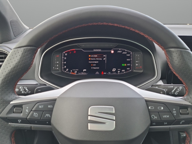 1. Hand; Scheckheftgepflegt; Navigationssystem; Scheinwerfer LED; LED- Hauptscheinwerfer mit Linse SEAT 'Full LED'; Klimaanlage Climatronic 2-Zonen; Klima-Komfort-Paket; Winterpaket; Sitzheizung für Vordersitze getrennt regelbar; Spurwechselassistent; Spurhalteassistent; Fernlichtassistent; Front Assist inkl. City ANB für ACC high; Automatische Distanzregelung (mit follow to stop) und Speed-Limiter; 'Vision Plus'-Paket: Parklenkassistent mit Rückfahrkamera; Fahrassistenz-Paket: Travel Assist; Nebelscheinwerfer und Abbiegeleuchte Nebelscheinwerfer; Lenkrad (Leder) mit Multifunktion; Scheibenwischer mit Regensensor; Ledersportmultifunktionslenkrad mit Tiptronic; Scheiben seitlich in Wärmeschutzver- glasung, ab B-Säule und hinten dunkel eingefärbt Getönte Seitenscheiben; Audiosystem mit Touchscreen-Farbdisplay; Außenspiegel, elektrisch anklappbar und elektrisch einstell-/beheizbar; Dachreling; Ambiente-Beleuchtung LED; Stoßfänger FR-Design