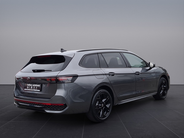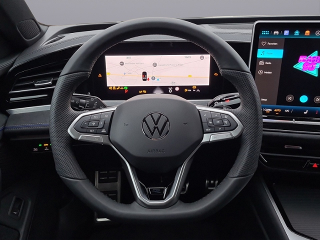 Anschlussgarantie, Laufzeit 3 Jahre im Anschluss an die Herstellergarantie, maximale Gesamtlaufleistung 100.000 km; Navigationssystem; IQ.LIGHT - LED-Matrix-Scheinwerfer mit Fernlicht 'Plus', Kurvenfahrlicht und dynamischer Blinkleuchte; Infotainment-Paket 'Discover Pro Max'; Head-up-Display; Automatische Distanzregelung ACC 'stop & go'; Dynamischer Fernlichtassistent 'Dynamic Light Assist'; Umgebungsansicht 'Area View' inkl. Rückfahrkamera 'Rear View'; Fahrassistent 'Travel Assist', Spurhalteassistent 'Lane Assist' und 'Emergency Assist'; Digital Cockpit Pro, mehrfarbig, verschiedene Info-Profile wählbar; Spurwechselassistent 'Side Assist', Ausparkassistent und Ausstiegswarnung; Anhängevorrichtung inkl. Anhängerrangierassistent 'Trailer Assist'; Vordersitze beheizbar, Sitzfläche und -lehne getrennt einstellbar; Digitaler Radioempfang DAB+; 'Business Premium'-Paket; Multifunktions-Sportlenkrad in Leder, beheizbar, mit Schaltwippen; R-Line 'Black Style'; Anhängevorrichtung anklappbar, mit elektrischer Entriegelung; inkl. Anhängerrangierassistent Trailer Assist; Adaptive Fahrwerksregelung DCC Pro inkl. Fahrprofilauswahl; Parkassistent 'Park Assist Pro', inkl. Einparkhilfe; Schlüsselloses Schließ- und Startsystem 'Keyless Access', mit berührungsloser Ver- und Entriegelung, SAFE-Verriegelung; Telefonschnittstelle 'Comfort' mit induktiver Ladefunktion; Klimaanlage 'Air Care Climatronic' mit Aktiv-Kombifilter, Bedienelementen hinten und 3-Zonen-Temperaturregelung; ergoActive-Sitze vorn mit elektrischer Einstellung, Memory, Komforteinstieg und verschiebbarer Oberschenkelauflage; Sonnenschutzrollo an den Türscheiben hinten; Diebstahlwarnanlage mit Innenraumüberwachung, Back-up-Horn und Abschleppschutz; App-Connect Wireless für Apple CarPlay und Android Auto; Sprachassistent IDA und elektronische Sprachverstärkung; 4 Leichtmetallräder 'York' 8 J x 18 in Schwarz, Volkswagen R; Winterräder 'Bologna' (zusätzlich), 4 Leichtmetallräder 7,5 J x 17, AirStop®-Winterreifen 215/55 R 17 H; R-Line; Dachreling schwarz hochglänzend; 'Easy Open & Close' - Heckklappe mit sensorgesteuerter Öffnung und Schließung, mit Fernentriegelung; Vordersitze mit Massageprogrammen; Außenspiegel elektrisch anklapp- und beheizbar, auf Fahrerseite abblendend, Beifahrerspiegelabsenkung und Memory; Seitenscheiben geräuschdämmend; Seitenscheiben hinten und Heckscheibe abgedunkelt