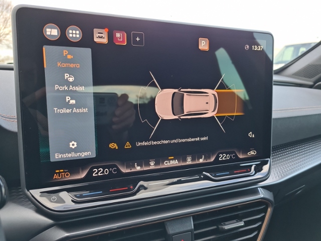 1. Hand; Scheckheftgepflegt; Audio-Navigationssystem mit Touchscreen Farbbildschirm 12,9'; Matrix-LED-Scheinwerfer mit LED-Signatur; Klimaanlage Climatronic 3-Zonen; Sitzheizung vorn; Rückfahrkamera; Spurhalteassistent; Fernlichtassistent; Kombiinstrument digital (virtual cockpit); Anhängerkupplung (Kugelkopf mit elektr. Entriegelung, schwenkbar); Autom. Distanzregelung (ACC / PCC) mit vorausschauender Geschw.-Regelung; Licht- und Sicht-Paket; Licht- / Regensensor; Winter - Paket; Einparkhilfe Plus vorn und hinten; Mit Verkehrszeichenerkennung; Performance-Paket; Lenkrad heizbar (CUPRA Supersport, Leder) mit Multifunktion und Schaltfunktion; Adaptive Fahrwerksregelung (DCC); Lichtassistent (Coming Home, Leaving Home); Audiosystem: Immersive by Sennheiser Sound-System (390 Watt); Außenspiegel elektr. verstell-, heiz- und anklappbar mit Spiegelabsenkung und Welcome Light; Außenspiegel elektr. verstell-, heiz- und anklappbar, Spiegelabsenkung, Welcome Light, Memory; Seitenscheiben hinten und Heckscheibe abgedunkelt; Dachreling schwarz, hochglänzend; Ambiente-Beleuchtung LED; Heckklappe/-Deckel elektr. betätigt (öffnen + schliessen, sensorgesteuert); Seitenscheiben ab 2.Sitzreihe und Heckscheibe dunkel getönt (Privacy Glass); Schließ-/Startsystem Kessy Advanced; Fahrprofilauswahl (CUPRA Drive Profile); Design-Paket Dynamic; Edge-Paket