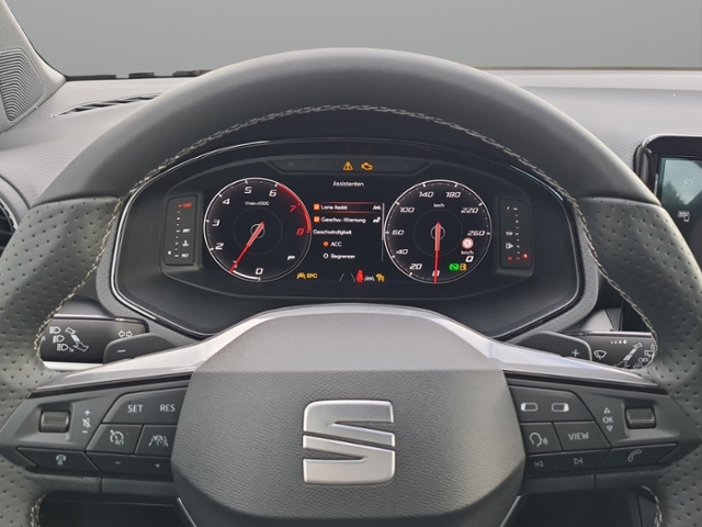 Scheinwerfer Voll-LED; Klimaanlage Climatronic 2-Zonen; Sitzheizung vorn; Rückfahrkamera; Automatische Distanzregelung ACC; Heckleuchten LED; Fernlichtassistent; Nebelscheinwerfer mit Abbiegelicht integriert; Geschwindigkeits-Regelanlage (Tempomat) inkl. Geschw.-Begrenzer; Parklenkassistent mit Einparkhilfe vorn und hinten inkl. Rückfahrkamera; Scheibenwischer mit Regensensor; Einparkhilfe Plus vorn und hinten; Mit Verkehrszeichenerkennung; Fahrprofilauswahl (SEAT Drive Profile); Freisprecheinrichtung; Full Link (MirrorLink, Apple CarPlay und Android Auto); Anhängerkupplung Vorbereitung; Außenspiegel elektr. verstell-, heiz- und anklappbar, beide; LM-Felgen 7x18 (Performance 20/1, grau); Seitenscheiben hinten und Heckscheibe abgedunkelt; FR-Tech-Paket; Audio-Navigationssystem mit Touchscreen Farbbildschirm 9,2'; Spurhalteassistent inkl. Travel Assist und Stauassistent