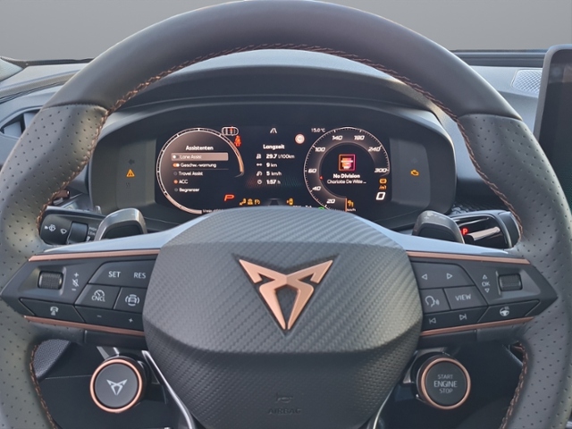 Progressivlenkung; Elektron. Stabilitäts-Programm (ESP) mit Bremskraftverstärker elektro-mechanisch; ASR; Kopf-Airbag-System; Airbag Beifahrerseite abschaltbar; Seitenairbag; Airbag Fahrer-/Beifahrerseite; Seitenairbag vorn mitte (Central Airbag); Zentralverriegelung / Startanlage Keyless Go (Start-Stop-Knopf); Innenspiegel mit Abblendautomatik; Parkbremse elektrisch mit Auto-Hold-Funktion; Fahrprofilauswahl (CUPRA Drive Profile); Wegfahrsperre (elektronisch); Motor 2,0 Ltr. - 150 kW 16V TSI