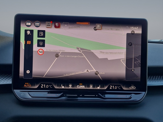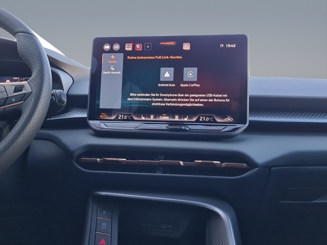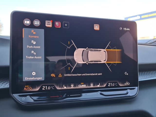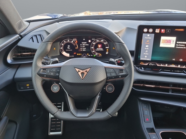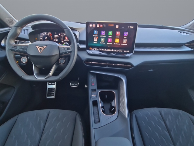 Navigationssystem; Radioempfang digital (DAB+); Connectivity-Box; USB-Schnittstelle vorn (2-fach, Typ C); Full Link (MirrorLink, Apple CarPlay und Android Auto); USB-Ladeanschlüsse (2-fach, Typ C) für 2.Sitzreihe; Sprachsteuerungs-System; Touch Screen; Mobile Online Dienste Cupra Connect; Subwoofer; 11 Lautsprecher; 9 Lautsprecher