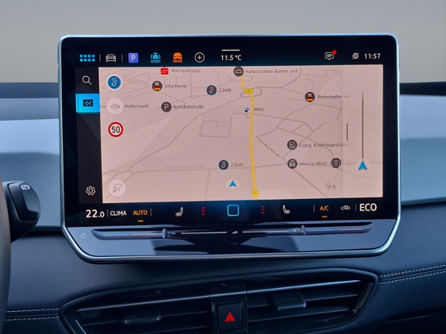 2 USB-C-Schnittstellen vorn, 2 USB-C-Ladebuchsen an der Mittelkonsolehinten; Ladeleistung bis zu 45 W; Touchscreen