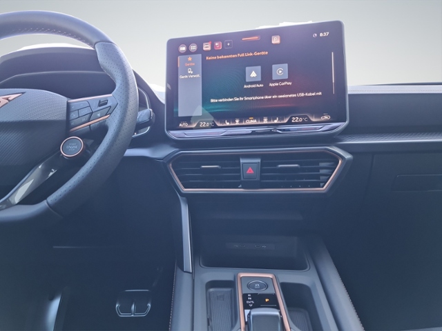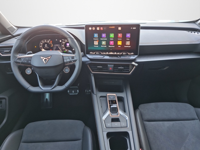 Radioempfang digital (DAB+); Connectivity-Box; USB-Schnittstelle vorn (2-fach, Typ C); Full Link (MirrorLink, Apple CarPlay und Android Auto); USB-Ladeanschlüsse (2-fach, Typ C) für 2.Sitzreihe; Audiosystem: Immersive by Sennheiser Sound-System (390 Watt); Induktive Ladefunktion; Pannenhilfe; Mobile Online Dienste Cupra Connect plus; 6 Lautsprecher