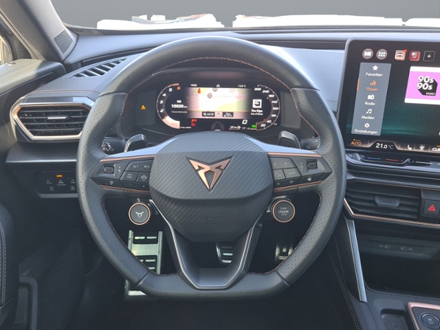 virtual cockpit; Multifunktionslenkrad; CUPRA Supersportmultifunktionslenkrad, beheizbar mit CUPRA Mode Selector; Bordcomputer; Lederlenkrad; Netztrennwand; Durchladeeinrichtung; Gepäckraumabdeckung; Variables Ladebodenkonzept; Gepäckraumabtrennung