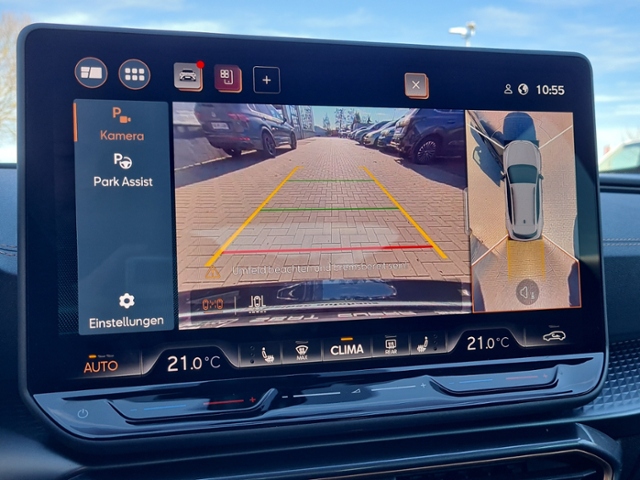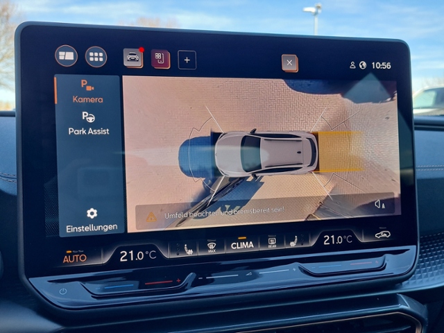 1. Hand; Scheckheftgepflegt; Audio-Navigationssystem mit Touchscreen Farbbildschirm 12,9'; Voll-LED-Paket; Climatronic ( 3-Zonen ) mit Klimabedienteil hinten; Sitzheizung für Vordersitze getrennt regelbar; Spurhalteassistent; Fernlichtassistent; Mit Front und Rückfahrkamerasystem und zwei Seitenkameras; Auspark- und Spurwechselassistent und Ausstiegswarner; Autom. Distanzregelung (ACC / PCC) mit vorausschauender Geschw.-Regelung; Spurhalteassistent Plus inkl. Travel Assist, Emergency Assist und Stauassistent; Licht- und Sicht-Paket; Nebelscheinwerfer; Einparkhilfe Plus vorn und hinten; Mit Verkehrszeichenerkennung; Lenkrad heizbar (CUPRA Supersport, Leder) mit Multifunktion und Schaltfunktion; 'Edge'-Paket mit SAFE-Verriegelung; Premium-Soundsystempaket 'Immersive by Sennheiser' für Interieur 1 (Standard- Sportsitze); Außenspiegel elektrisch anklappbar-/einstellbar, beheizbar, mit Beifahrerspiegelabsenkung; Vorbereitung für Anhängevorrichtung Vorbereitung für Anhängevorrichtung; LM-Felgen 8x18 (Tempest); Dachreling, schwarz; Scheiben seitlich in Wärmeschutzver- glasung, ab B-Säule und hinten dunkel eingefärbt; Seitenscheiben ab 2.Sitzreihe und Heckscheibe dunkel getönt (Privacy Glass); Subwoofer; Fahrassistenz-Paket XL