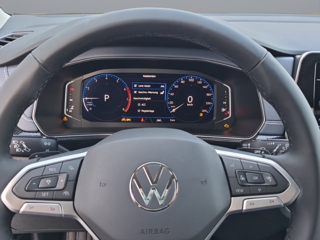 Klimaanlage 'Air Care Climatronic' mit Aktiv-Kombifilter und 2-Zonen-Temperaturregelung; Digital Cockpit Pro, mehrfarbig, verschiedene Info-Profile wählbar; Einfassung des Infotainment-Systems, des Digital Cockpit, der Ausströmer und der Schalthebelkulisse in Chrom-Optik; Multifunktionslenkrad in Leder, mit Schaltwippen; Frischluftansaugung mit Aktivkohlefilter; Bordcomputer; Textilfußmatten vorn und hinten; Gepäckraumabdeckung; Lenksäule mit Höhen- und Längseinstellung; Dachhimmel; Handbremshebelgriff in Leder; Schalthebelknauf in Leder; Make-up-Spiegel in den Sonnenblenden; Handschuhfachklappe,mit Leuchte; Instrumententafel geschäumt