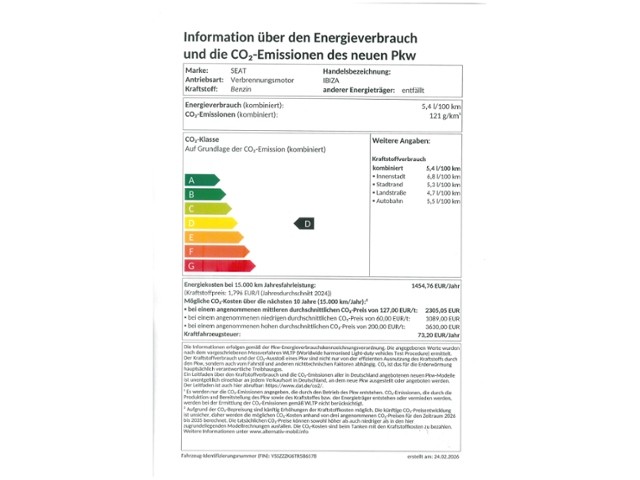 Kombiinstrument digital (8 Zoll); Innenraumfilter: Pollenfilter; Bordcomputer; Fensterheber elektrisch vorn + hinten mit Komfortschaltung; Gepäckraumabdeckung / Rollo; Lenksäule (Lenkrad) verstellbar; Dachhimmel schwarz; Sonnenblende links mit Spiegel (beleuchtet); Getränkehalter vorn; Steckdose (12V-Anschluß) vorn; Sonnenblende rechts mit Spiegel (beleuchtet); Türablagefach vorn