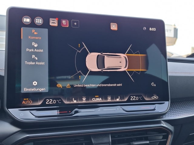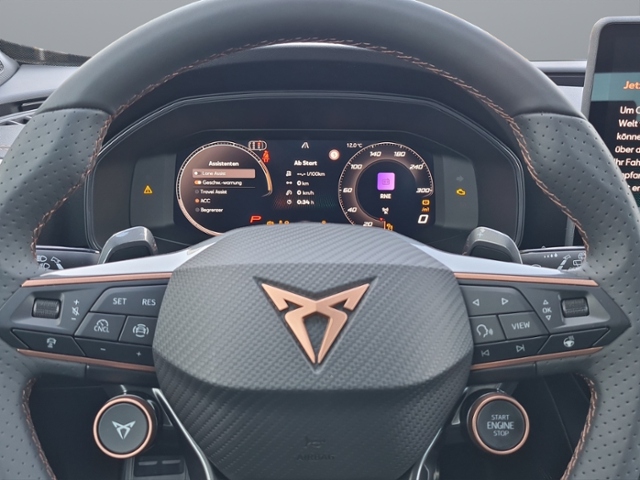 HD Matrix-LED-Scheinwerfer; Audio-Navigationssystem mit Touchscreen Farbbildschirm 12,9'; Klimaanlage Climatronic 3-Zonen; Automatische Distanzregelung ACC; Anhänger-Rangierassistent (Trailer Assist); Kombiinstrument digital (virtual cockpit); Anhängerkupplung (Kugelkopf mit elektr. Entriegelung, schwenkbar); Performance-Paket; Lenkrad heizbar (CUPRA Supersport, Leder) mit Multifunktion und Schaltfunktion; Edge Paket mit Safesicherung; Adaptive Fahrwerksregelung (DCC); Audiosystem: Immersive by Sennheiser Sound-System (390 Watt); Außenspiegel elektr. verstell-, heiz- und anklappbar mit Spiegelabsenkung und Welcome Light; Seitenscheiben hinten und Heckscheibe abgedunkelt; Seitenscheiben ab 2.Sitzreihe und Heckscheibe dunkel getönt (Privacy Glass)