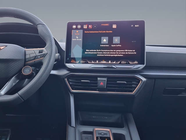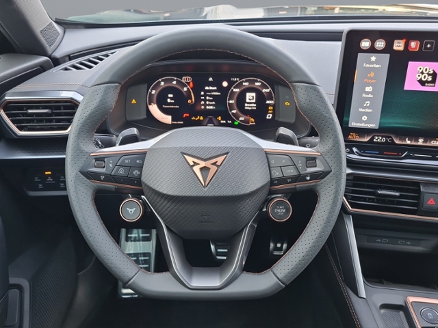 Radioempfang digital (DAB+); Connectivity-Box; USB-Schnittstelle vorn (2-fach, Typ C); Full Link (MirrorLink, Apple CarPlay und Android Auto); USB-Ladeanschlüsse (2-fach, Typ C) für 2.Sitzreihe; Sprachsteuerungs-System; Audiosystem: Vorbereitung für spätere Freischaltung Navigationsfunktion Cupra Connect Plus; Subwoofer; 11 Lautsprecher; Media-System Plus; Mobile Online Dienste Cupra Connect plus; 6 Lautsprecher