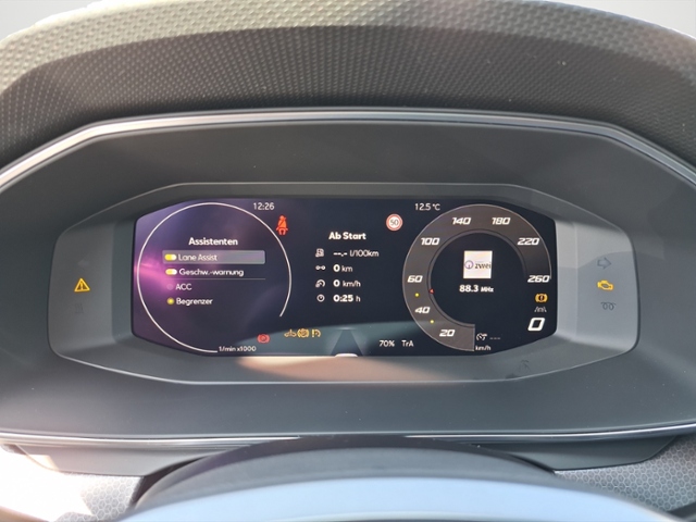 Bordcomputer; Fensterheber elektrisch vorn + hinten mit Komfortschaltung; Gepäckraumabdeckung / Rollo; Gepäckraumabtrennung; Sonnenblende links mit Spiegel (beleuchtet); Handschuhfach beleuchtet; Steckdose (12V-Anschluß) vorn; Sonnenblende rechts mit Spiegel (beleuchtet); Türablagefach vorn; Schalt-/Wählhebelgriff Kunstleder; Kombiinstrument digital (10,25 Zoll)
